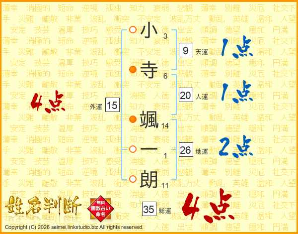 小寺颯一朗さんの総運は35画の4点!