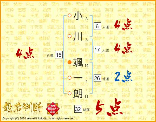 小川颯一朗さんの総運は32画の5点!