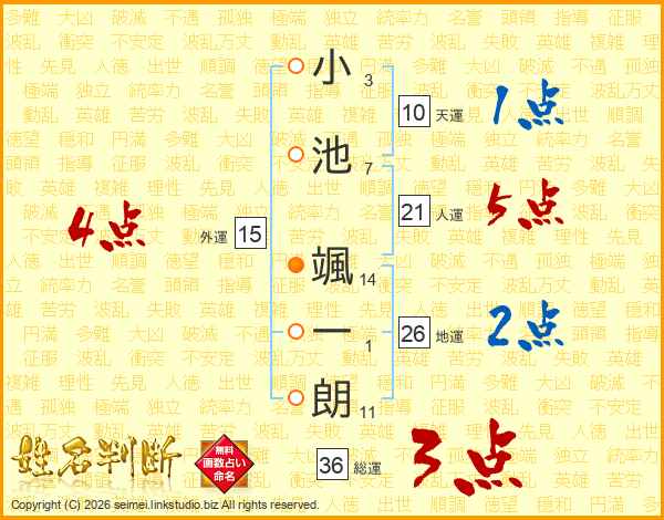 小池颯一朗さんの地運は26画の2点!