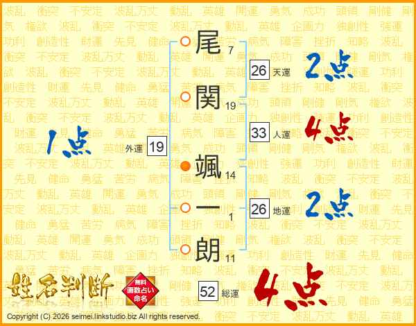 尾関颯一朗さんの地運は26画の2点!