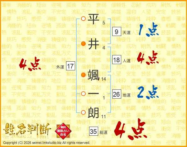 平井颯一朗さんの地運は26画の2点!