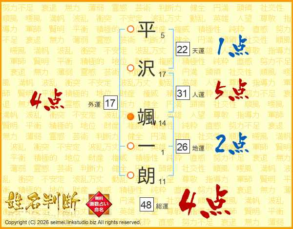 平沢颯一朗さんの地運は26画の2点!