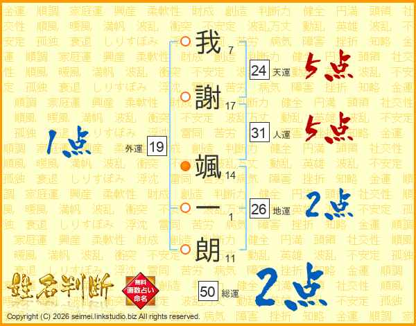 我謝颯一朗さんの人運は31画の5点!