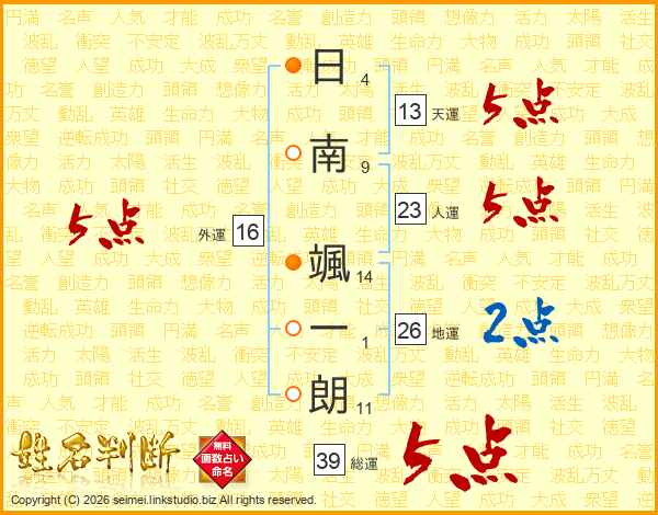 日南颯一朗さんの総運は39画の5点!