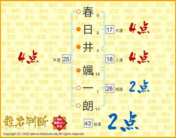 春日井颯一朗さんの天運は17画の4点!