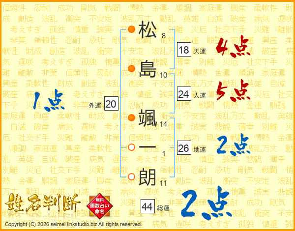 松島颯一朗さんの総運は44画の2点!