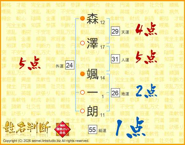 森澤颯一朗さんの地運は26画の2点!