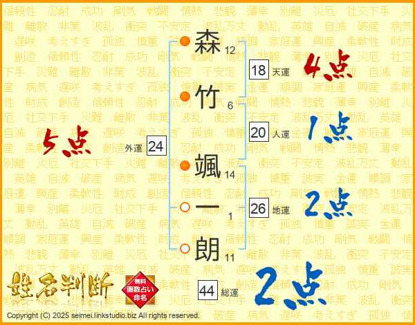 森竹颯一朗さんの地運は26画の2点!