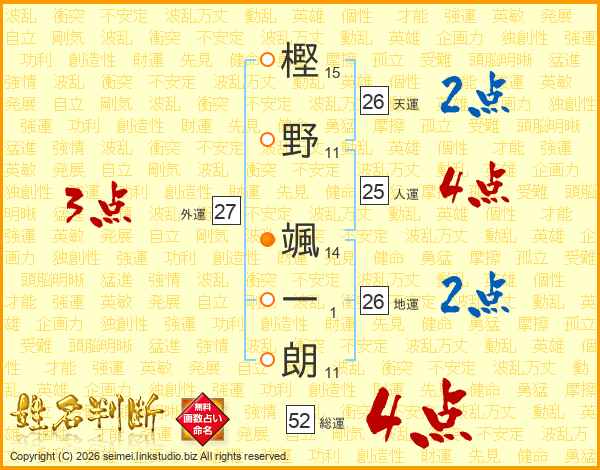樫野颯一朗さんの総運は52画の4点!