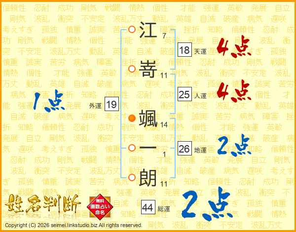 江嵜颯一朗さんの人運は25画の4点!