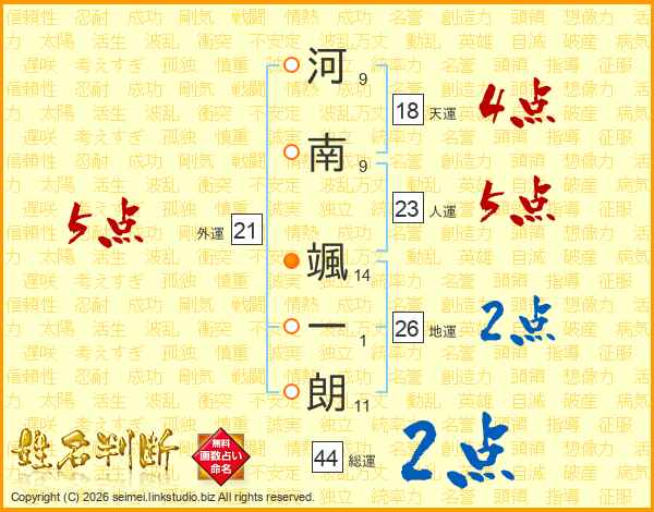 河南颯一朗さんの総運は44画の2点!