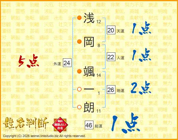 浅岡颯一朗さんの地運は26画の2点!
