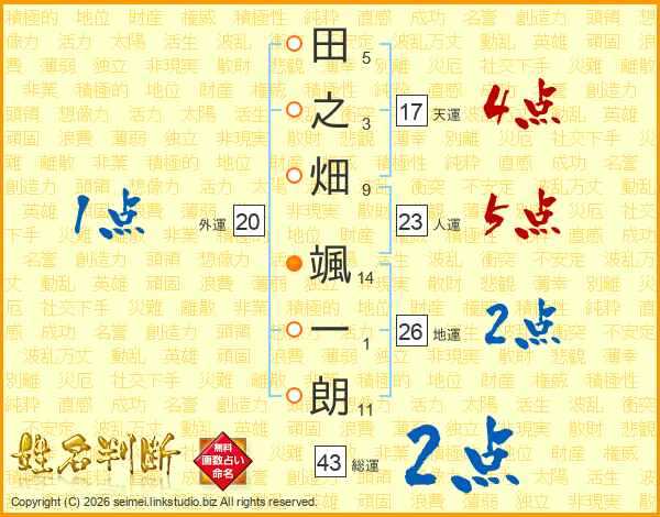 田之畑颯一朗さんの地運は26画の2点!