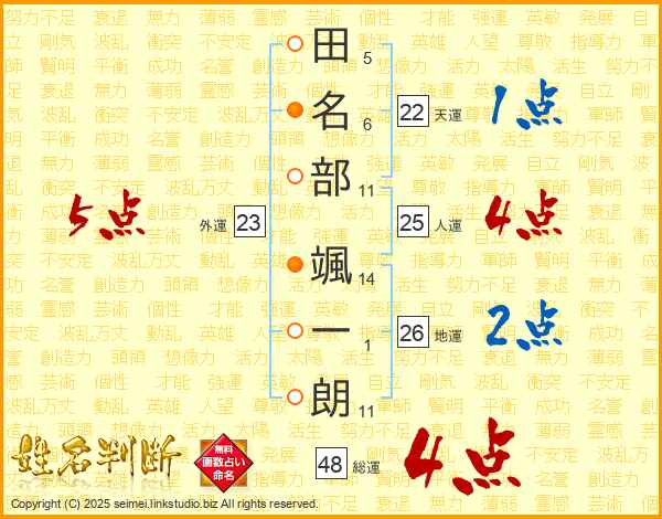 田名部颯一朗さんの地運は26画の2点!