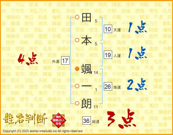 田本颯一朗さんの地運は26画の2点!