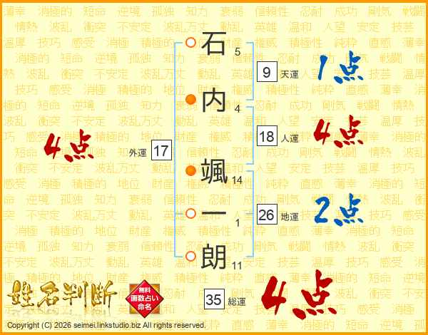 石内颯一朗さんの地運は26画の2点!