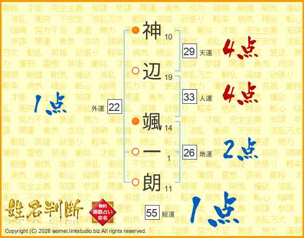 神辺颯一朗さんの天運は29画の4点!