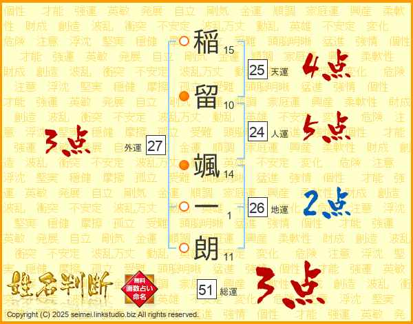稲留颯一朗さんの天運は25画の4点!