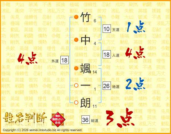 竹中颯一朗さんの地運は26画の2点!