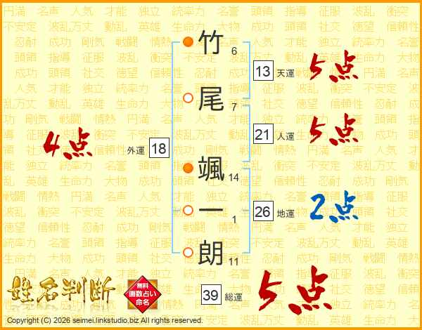 竹尾颯一朗さんの総運は39画の5点!