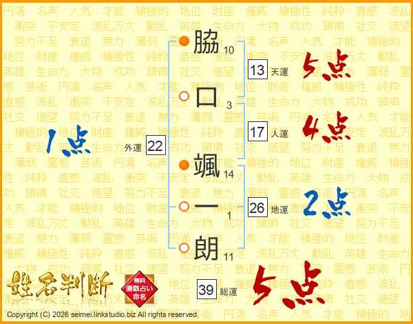 脇口颯一朗さんの総運は39画の5点!