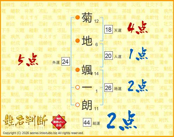 菊地颯一朗さんの地運は26画の2点!