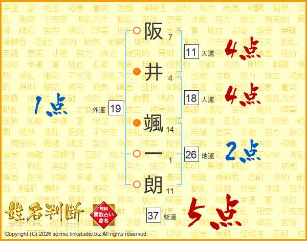 阪井颯一朗さんの天運は11画の4点!