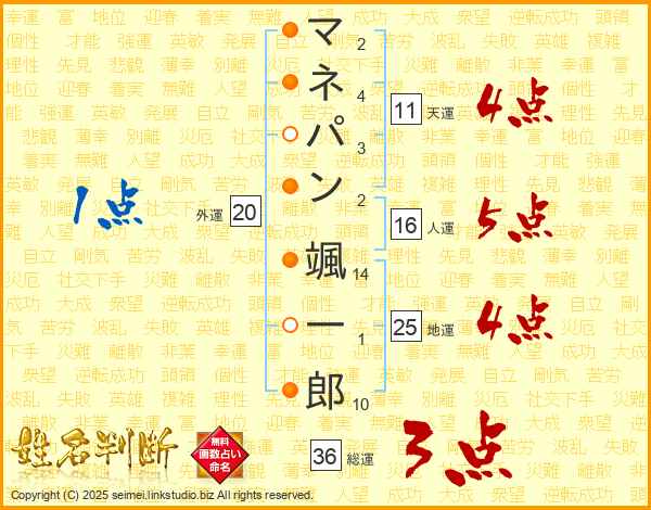 マネパン颯一郎さんの総運は36画の3点!