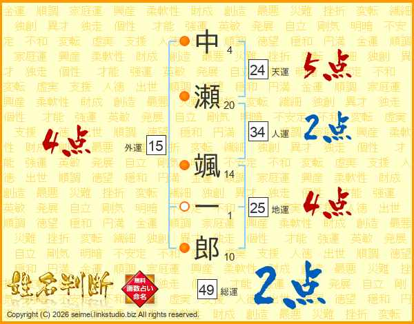 中瀬颯一郎さんの天運は24画の5点!