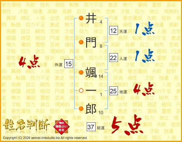 井門颯一郎さんの総運は37画の5点!