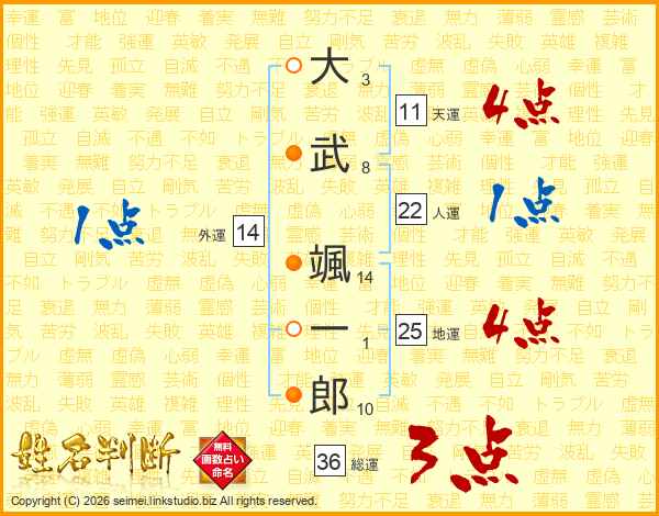 大武颯一郎さんの天運は11画の4点!