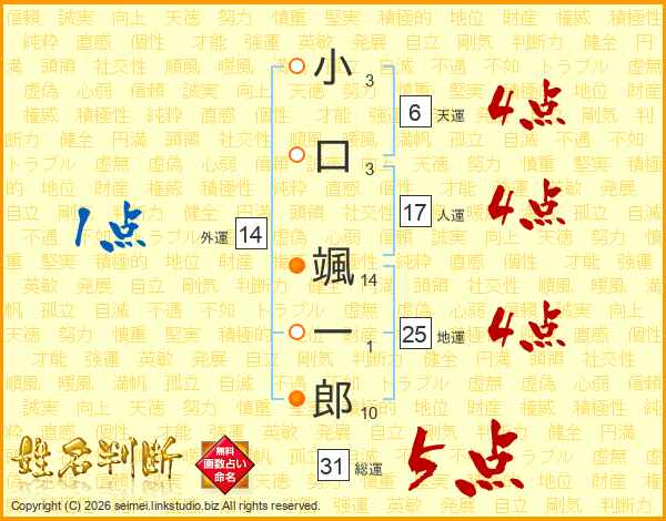 小口颯一郎さんの総運は31画の5点!