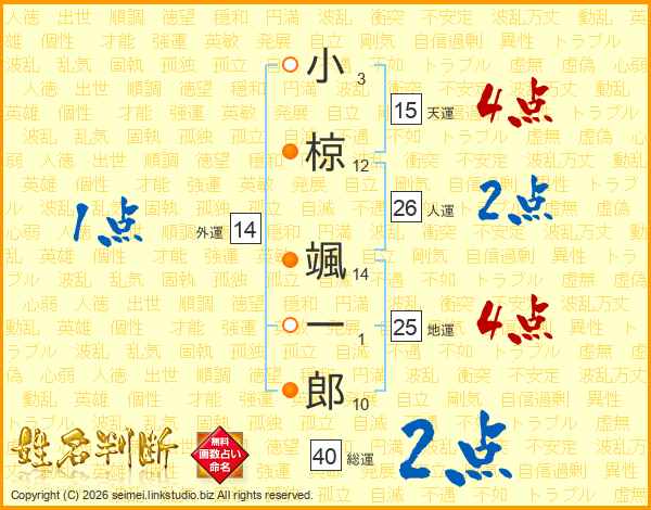 小椋颯一郎さんの総運は40画の2点!
