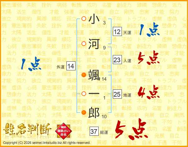 小河颯一郎さんの総運は37画の5点!