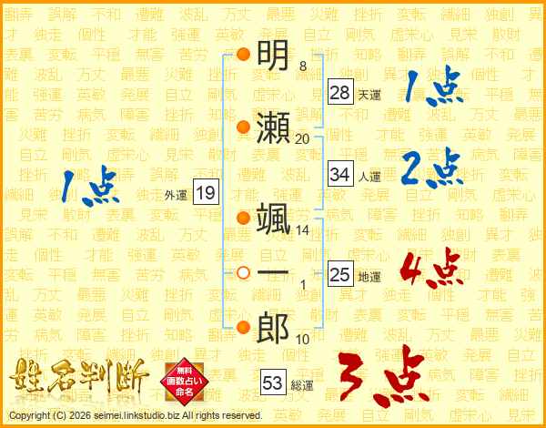 明瀬颯一郎さんの総運は53画の3点!