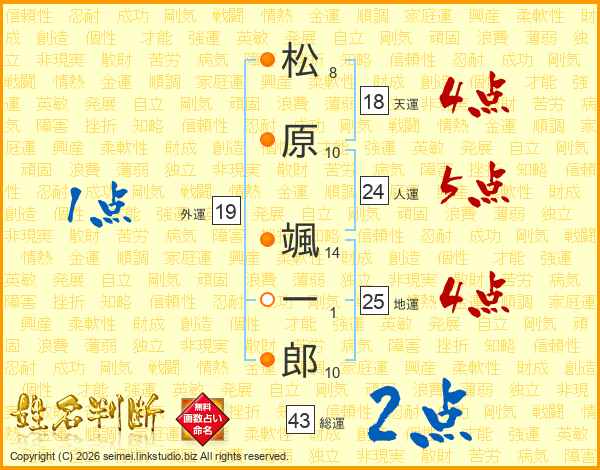 松原颯一郎さんの天運は18画の4点!