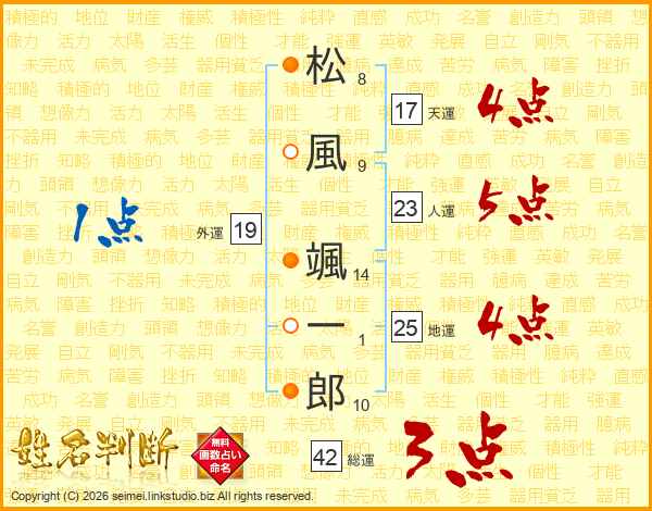 松風颯一郎さんの天運は17画の4点!