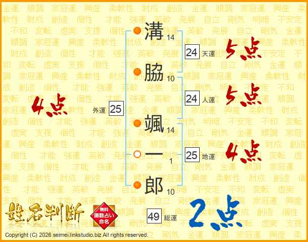 溝脇颯一郎さんの総運は49画の2点!