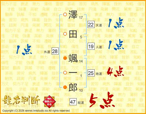 澤田颯一郎さんの総運は47画の5点!
