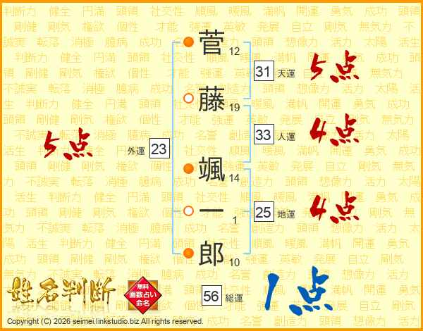 菅藤颯一郎さんの天運は31画の5点!