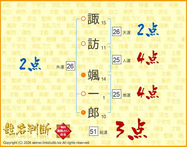 諏訪颯一郎さんの天運は26画の2点!