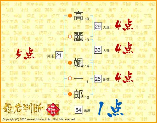 高(10画)麗(19画) 颯(14画)一(1画)郎(10画)