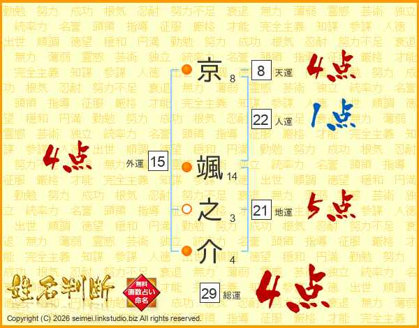 京颯之介さんの総運は29画の4点!