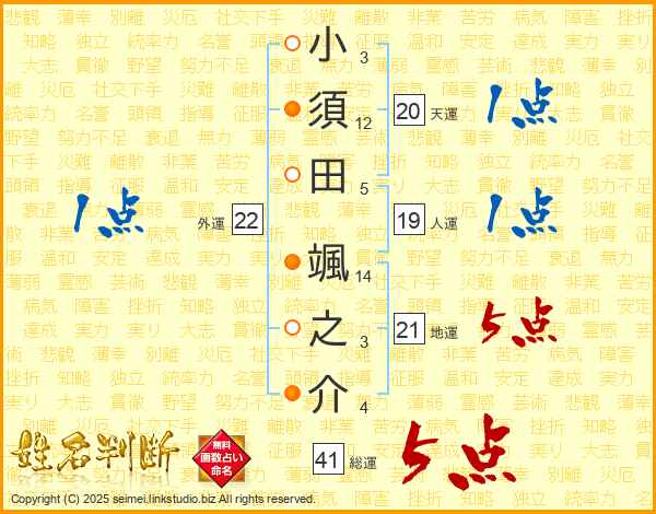 小須田颯之介さんの総運は41画の5点!