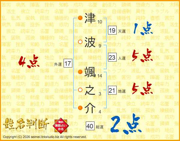 津波颯之介さんの地運は21画の5点!