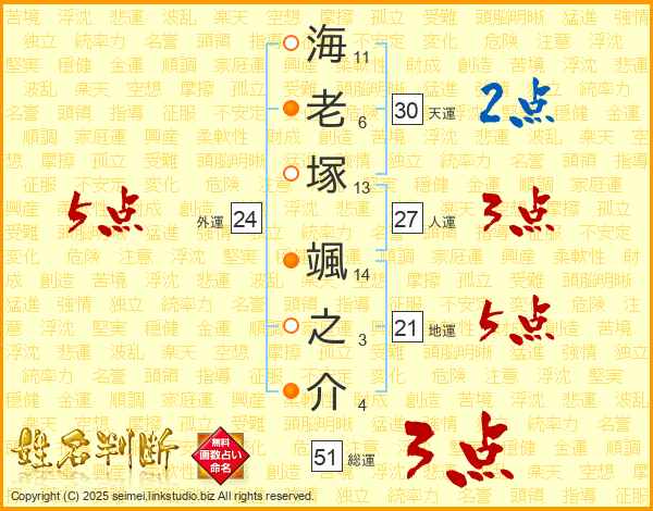 海老塚颯之介さんの総運は51画の3点!