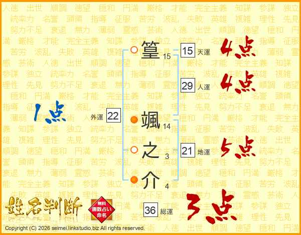 篁颯之介さんの地運は21画の5点!