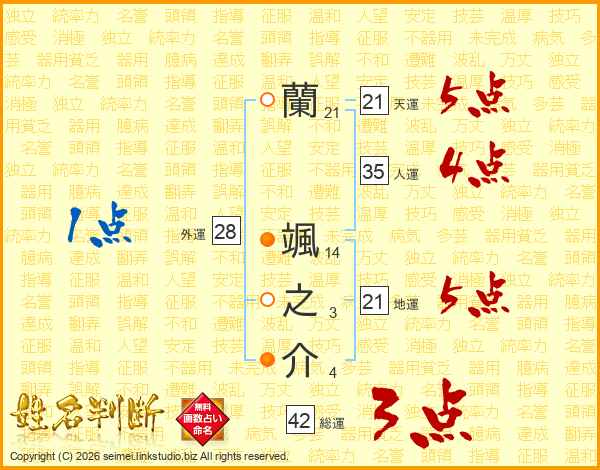 蘭(21画) 颯(14画)之(3画)介(4画)