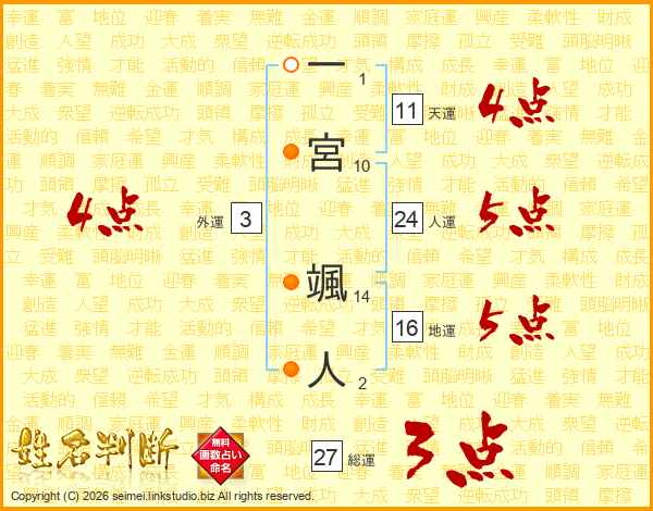 一宮颯人さんの総運は27画の3点!