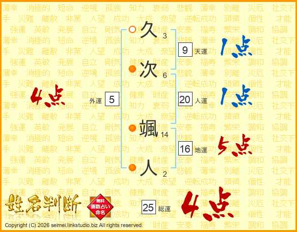 久次颯人さんの総運は25画の4点!